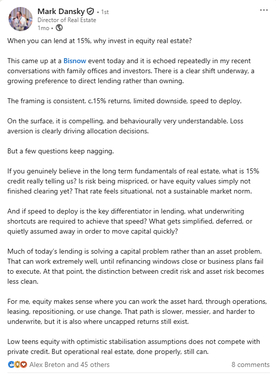 A fair discussion on real estate equity vs credit