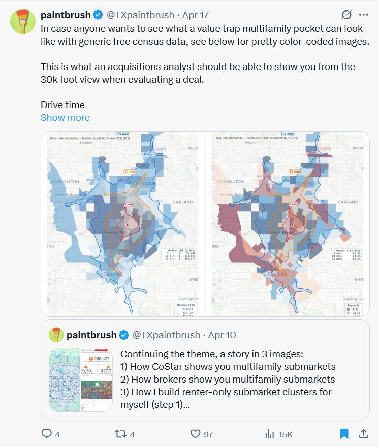 Useful post with a lot of great commentary and discussion on underwriting multifamily in prime markets